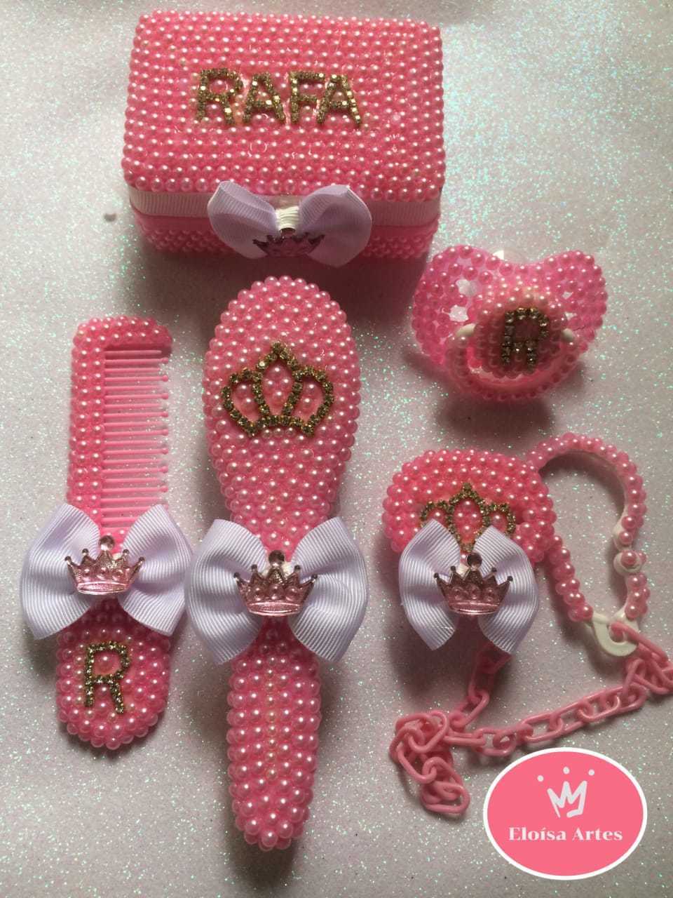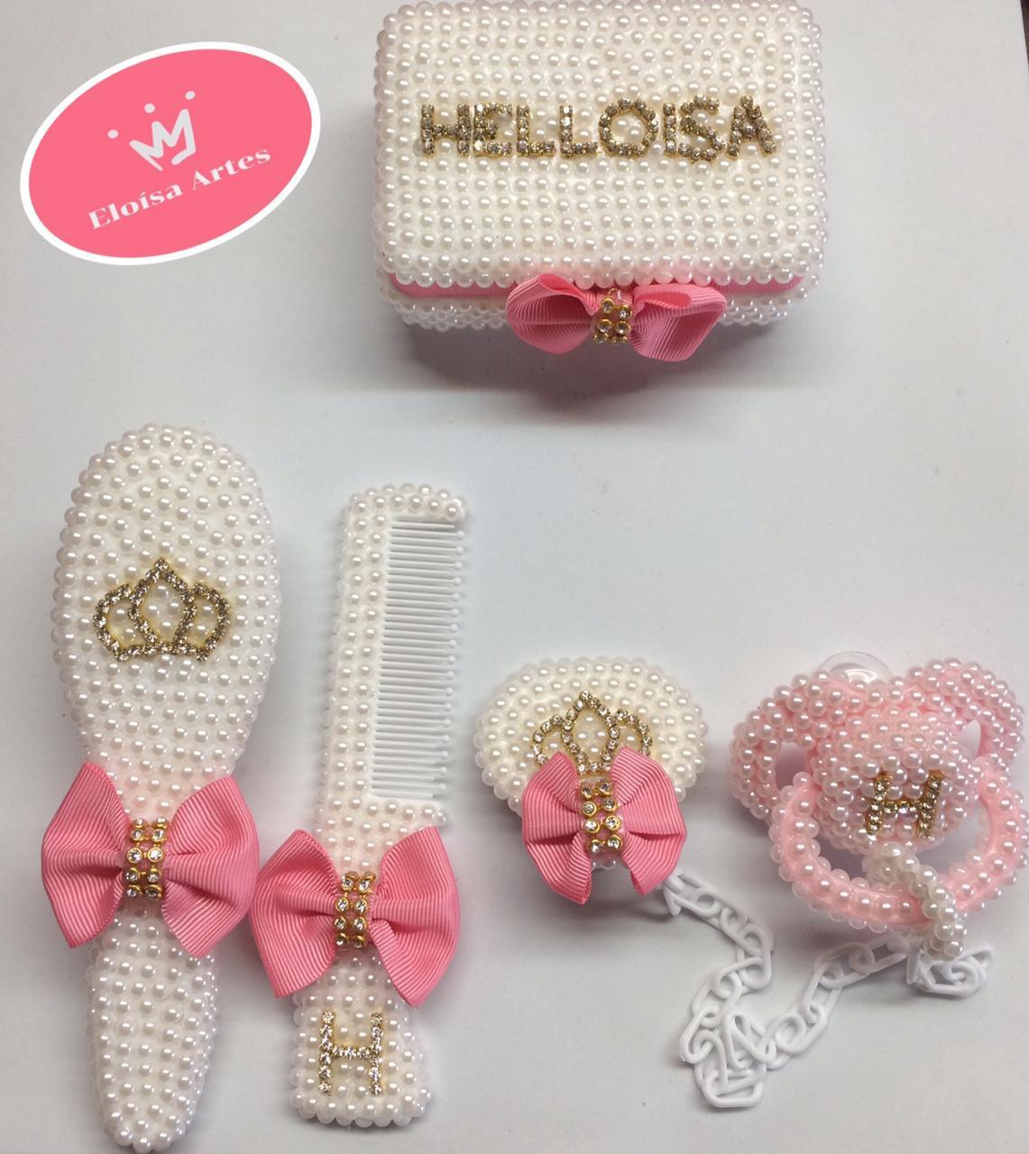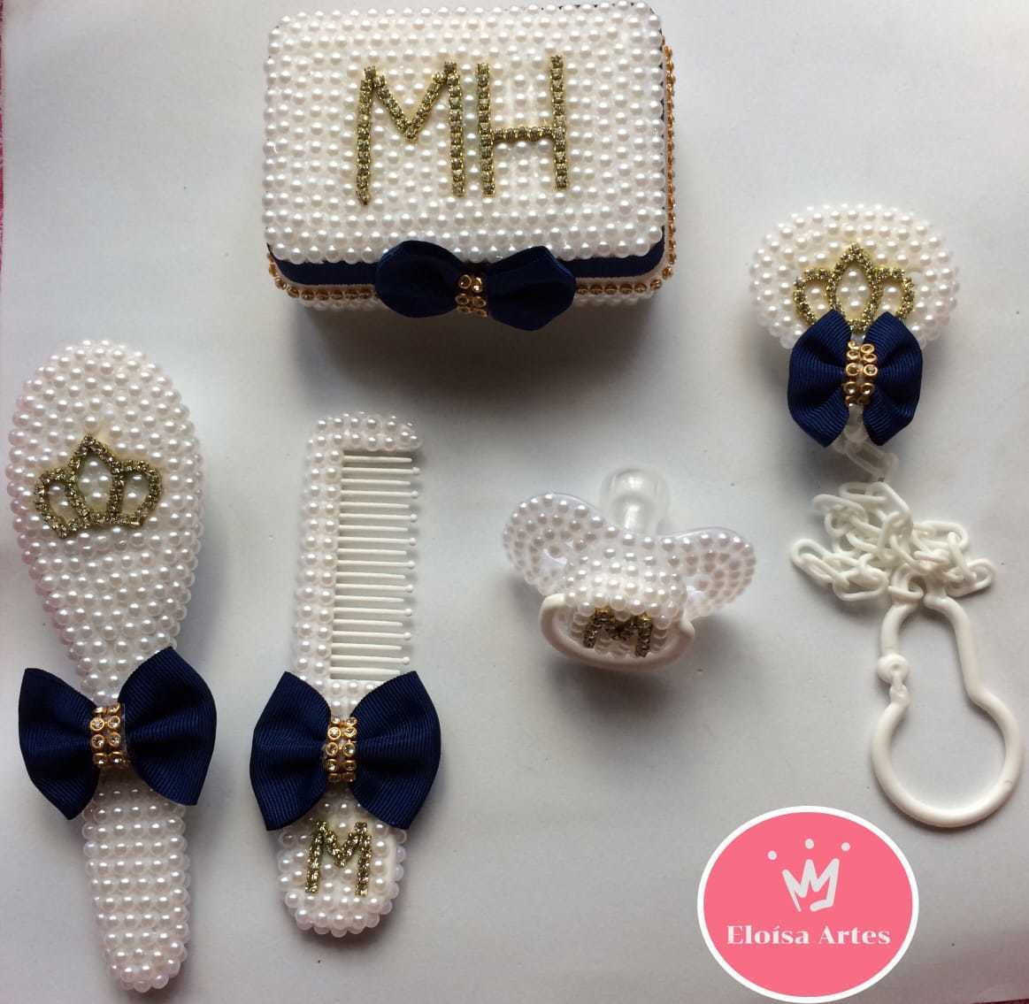 Kit escovinha todo em pérola, feito a mão e com todo amor. Kit escovinha acompanha 5 peças, vem escovinha, pente, saboneteira, prendedor e chupeta. O puro luxo, fazemos de acordo com o gosto dos nossos clientes, fazemos para meninos e meninas o kit tem 4 valores